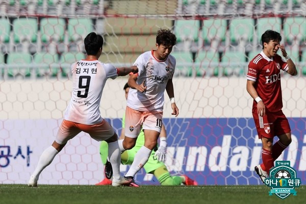 전반전은 강하게 압박하고 부딪히는 양 팀의 기싸움으로 시작됐다. 전반 8분 골문 앞에서 고무열이 살려낸 공을 그대로 이재권이 슈팅을 하며 골문을 두드렸다. 다음 코너킥에서도 고무열이 수비수를 제치고 헤더까지 시도했지만 골키퍼 품 안에 안겼다. 반면 부산은 전반 34분 먼 거리에서 시도한 김정현의 과감한 중거리 슈팅을 제외하면 위협적인 장면을 연출하지 못했다. 팽팽한 접전 속에서도 강원이 조금씩 분위기를 가져왔고, 홈구장과 달리 부산의 잔디는 나쁘지 않았다. 빠르게 패스를 돌리며 공수 전환을 시도했고, 그 중심에서 한국영이 팀 전체의 안정감을 더했다. 강한 압박을 매끄럽게 이겨내고 양질의 패스를 뿌리는 한국영의 존재덕에 강원은 주도권을 가져갈 수 있었다. 게다가 한국영은 후반 6분에는 직접 어시스트를 기록하며 승리를 이끌었다. 페널티 박스 바깥에서 슛 페이크로 전진한 뒤 수비수 사이로 절묘한 스루패스를 연결했고, 고무열은 곧바로 골문 구석으로 향하는 선제골을 뽑아냈다.