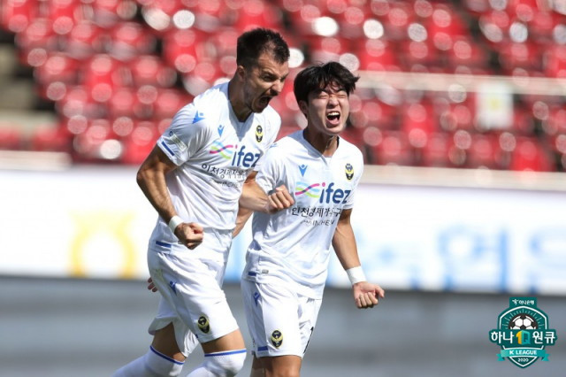 성남은 주중 경기 체력 안배를 택한 게 무색하게도 경기 시작 2분 만에 초대형 악재를 만났다. 연제운이 페널티지역 오른쪽에서 트래핑을 실수하며 공을 빼앗겼고, 다급한 나머지 무고사를 저지하려다 반칙을 범했다. 심판의 처음 판정은 경고였지만, 비디오 판독 결과 결정적인 일대일 상황을 막았다는 이유로 연제운을 퇴장 조치했다. 수적 우위의 인천은 빠른 시간 골을 몰아치며 승기를 잡았다. 전반 11분 아길라르의 패스가 수비를 맞고 높이 튀어올랐고, 김준범이 침착하게 왼발 슈팅으로 마무리하며 골망을 흔들었다. 7분 뒤에는 아길라르의 코너킥을 무고사가 머리로 밀어 넣으며 순식간에 2골 차를 만들었다. 수비진의 리더 주장 연제운이 빠진 성남은 무기력했고 조급했다. 반면 인천은 안정적으로 공을 돌리면서도 유기적인 압박으로 주도권을 내주지 않았다. 게다가 22경기 동안 15골에 그쳤던 답답한 골 결정력 문제를 단숨에 해결하며 자신감을 얻었다. 후반 9분 김도혁의 과감한 중거리 슈팅으로 3번째 골을 터뜨렸고, 후반 32분에는 골문 앞에서 성남의 패스 미스를 놓치지 않고 골키퍼까지 제치고 멀티골을 기록했다.