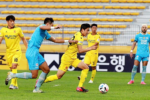전반전엔 주도권을 쥔 강원의 공세와 이를 막아내는 베테랑 골키퍼 김영광이 돋보였다. 전반 24분 이영재, 고무열이 연이어 슈팅을 시도했지만 골로 연결되지 않았다. 상대적으로 내려앉은 성남 수비진을 패스로 공략하려는 강원의 시도가 이어지는 가운데 결정적 터닝 포인트가 나왔다. 지난 인천전에 이어 또 퇴장이었다. 전반 29분 성남 박수일이 무리한 태클을 시도하다가 그대로 퇴장당했다. 0대 6 대패의 트라우마가 떠오를법한 이른 퇴장이었고, 강원은 더욱 거세게 성남을 몰아붙였다. 특히 후반 4분 코너킥 상황에서 임채민이 높이 뛰어올라 시도한 헤더가 골대를 강하게 맞고 나왔다. 반면 성남은 후반 9분 나상호가 환상적인 터닝 슈팅으로 수적 열세를 이겨내고 선제골을 터뜨렸다. 하지만 강원은 골 넣는 수비수가 있었다. 그것도 2명이나. 계속 경기를 주도하던 강원은 결국 후반 36분 동점에 성공했다. 세트피스 상황에서 김경중의 슈팅이 골대를 맞고 나오자 김영빈이 재차 밀어 넣으며 골망을 흔들었다.