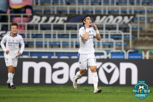 중요한 승부를 앞둔 22명의 선수들보다 눈에 띈 건 엉망진창인 '잔디'였다. 지난 울산전 이후 잔디 보수 공사를 했다지만, 여기저기 깊게 파인 잔디와 흙더미는 부끄러울 지경이었다. 제대로 된 패스가 되지 않고 공은 갑자기 튀어 오르기 일쑤였고, 결국 양 팀 모두 전반 내내 결정적 기회를 만들지 못했다. 인천이 점유율을 높이며 공을 돌렸지만 최전방이 아닌 후방에서의 빌드업이었고, 오히려 수원의 패스워크를 바탕으로 한 빠른 공격 전개가 돋보였다. 결국 골은 전반 44분 매탄고 유스 출신 김태환의 발끝에서 나왔다. 고승범이 내준 공을 침착하게 컨트롤하고, 김태환은 강한 왼발 슈팅을 시도했고 그대로 골망을 흔들었다. 스리백, 투톱 등 멀티 플레이어의 자질을 뽐내며 중용받고 있는 김태환은 우측 미드필더로 나와 최근 준수한 활약을 펼쳤다. 왕성한 활동량과 상대 수비수의 신경을 자극하는 영리(혹은 얄미운) 플레이로 팀에 보탬이 되던 와중에 프로 데뷔골까지 터뜨렸다. 게다가 박건하 감독의 현역 시절 트레이드마크 '옷깃 세레머니'까지 따라 하는 센스를 선보였다.