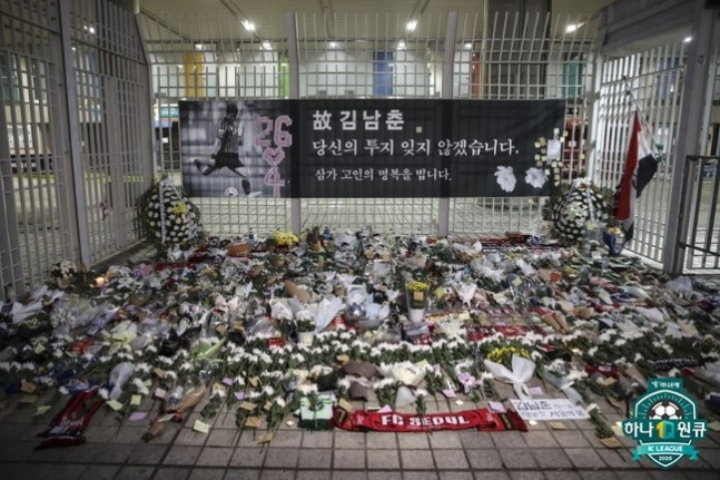 리그 최종전을 하루 앞두고 서울에 비보가 전해졌다. 서울 원클럽맨이자 2016년 우승 멤버였던 김남춘이 사망했다는 충격적인 소식이었다. 김남춘은 2016년 황선홍 감독 부임 이후 4백의 중심으로 곽태휘와 호흡을 맞추며 든든한 수비력을 뽐낸 선수였다. 전북과의 리그 마지막 경기에서도 풀타임으로 출전하며 우승의 핵심 선수로 맹활약했고, 상무 제대 이후 서울로 복귀해 올해도 꾸준히 주전으로 활약했다. 올해 K리그 100경기 출전을 달성했고, 팬들에게 항상 친절했고 고마움을 표시하곤 했다. 23라운드 수원전 부상 교체 이전에는 1경기를 빼고 전부 출전하며 수비진을 이끌었다. 너무나 갑작스러운 이별에 팬과 선수 모두 슬픔에 헤어 나올 수 없었다. 서울 팬들은 N석 입구에 추모 공간을 마련해 국화꽃과 추모의 메시지를 전했다. 서로 죽일 듯 미워했던 라이벌 수원 팬도 안타까운 이별에 명복을 빌었고, 경기 전 묵념의 시간도 있었다. 아울러 전반 4분 김남춘의 등번호 4번에 맞춰 박수를 치며 그를 추모했다.