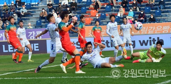 조심스러운 분위기 속에 수원이 이른 시간 선제골을 기록했다. 전반 6분 김민우의 프리킥 크로스를 헨리가 다이빙 헤더 골로 연결했다. 올해 수원에 합류해 단숨에 수비의 중심으로 자리 잡은 헨리의 리그 데뷔골이었다. 선제골 이후에도 수원은 공격을 계속 시도했고 빠르게 추가골을 뽑았다. 전반 18분 신세계가 몸을 날려 수비하는 과정에서 핸들링 반칙을 범해 페널티킥을 허용했다. 타가트는 침착하게 골망을 흔들었고 리그 9호 골을 기록했다. 시즌 초반 태업 논란과 주승진 감독대행과의 불화로 부진했지만, 결국 수원 최고득점자는 타가트였다. 2골 차로 전반을 내준 강원은 후반전 시작과 동시에 라인을 올리며 수원을 압박했다. 짜임새 있는 압박과 빠른 패스 플레이로 수원을 괴롭히던 강원은 흐름을 서서히 가져왔다. 결국 후반 8분 김승대가 수비를 뚫고 패스한 공을 고무열이 침착하게 마무리하며 만회골을 넣었다. 기복은 있었지만 결국 고무열은 24경기 9골 1도움으로 팀 내 최다골을 기록하며 건재함을 보여줬다.