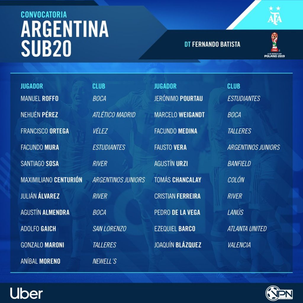 U20 월드컵 16회 참가, 6회 최다 우승을 자랑하는 아르헨티나는 U20 월드컵에서 항상 우승후보로 꼽힌다. 수많은 빅클럽 스카우터 앞에서 펼치는 쇼케이스는 아르헨티나를 위한 잔치와 같다. 실제 디에고 마라도나(1979년), 하비에르 사비올라(2001년), 리오넬 메시(2005년), 세르히오 아구에로(2007년) 등 U20 월드컵 골든볼 수상자들은 성인 대표팀의 주축, 유럽 빅클럽 에이스로 맹활약했다. 특히 메시의 2005년 네덜란드 U20 월드컵의 퍼포먼스는 환상적이었다. 6골로 득점왕에 올랐는데, 약팀을 상대로 몰아넣은 게 아니라 모든 골이 순도가 높았다. 나이지리와의 결승전의 침착한 PK 2골은 물론 콜롬비아(16강), 스페인(8강), 브라질(4강)을 상대로 골을 기록했기 때문이다. 2~3명 수비 사이를 개인기로 돌파하고, 강력한 왼발 슈팅을 날리는 건 발롱도르 수상 때나 어린 시절이나 판박이였다. 유독 U20 월드컵에 강하고, 많은 스타를 배출한 아르헨티나는 이번 폴란드에서도 강력한 스쿼드로 우승을 노린다.