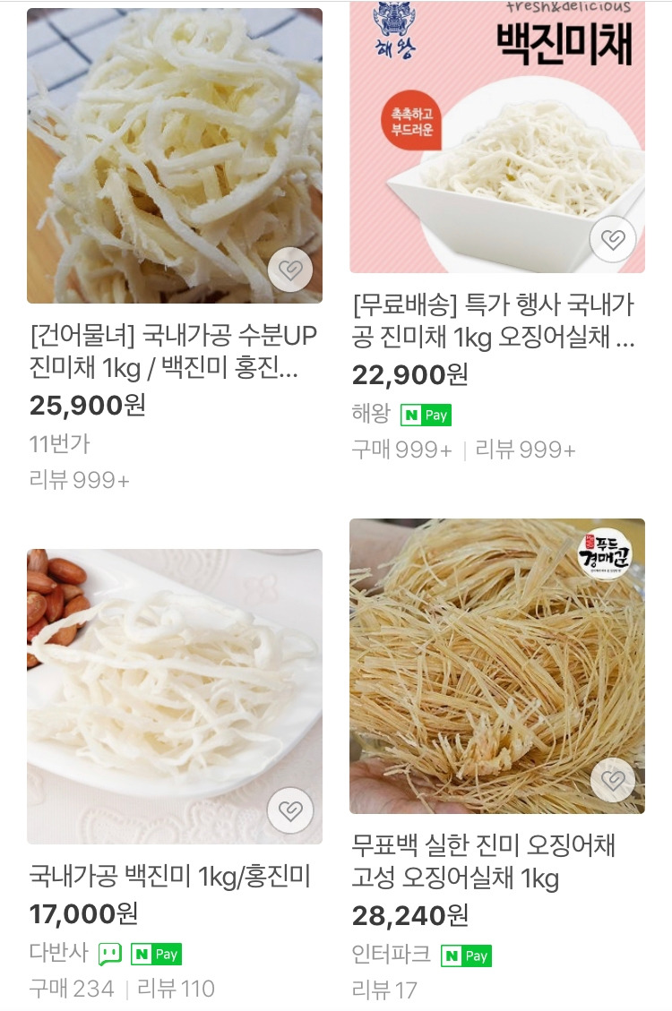 tvN <스페인 하숙>은 유해진, 차승원, 배정남이 알베르게를 운영하는 프로그램이다. 자극적인 불화나 반전, 슬픈 사연은 등장하지 않는다. 그저 낯선 여행자들과 이야기를 나누고, 사소한 농담을 주고받으며 피식 웃고 마는 게 전부다. 모니터 속 엑셀 표와 씨름하는 게 일상인 사무실, 비라도 오는 날이면 지옥이 다름없는 답답한 퇴근길. 고된 하루를 버텨낸 직장인에게는 그저 <스페인 하숙> 같은 담백하고 소소한 예능이 적합했다. 이들은 서로 도와가며 뚝딱뚝딱 빠른 손놀림으로 여행자들에게 푸짐한 한식을 차려준다. 산티아고 순례길을 따라 걷는 이들에게 한식은 단순히 한 끼가 아니라, 진한 감동을 선사하는 고향의 맛이다. 김칫국, 불고기, 된장찌개, 제육볶음, 미역국. 예쁜 그릇에 정갈하게, 하지만 푸짐하게 나오는 한식에 TV 앞에서 덩달아 군침을 삼켰다. 그중에서도 차승원이 배정남이 좋아하는 반찬인 '진미채 볶음'을 뚝딱 만들어주는 걸 보고 참지 못하고 곧장 네이버로 '진미채'를 검색했다. 백종원 레시피도 있겠다, 만들어 볼만한 만만한 메뉴라 생각했다. 그런데 1kg에 19,900원? 홍진미? 백진미? 어린 시절 매번 나오던 제일 평범한 메뉴가 이렇게 비싸고 종류가 다양했다니. 놀라서 휴대폰을 들었다.