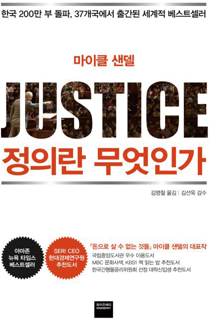 사회 유지와 개인의 존엄성 보호를 위해 법이 존재하는 것인데 오히려 역설적으로 법이 본질을 해칠 수 있다는 것이 샌델이 가진 맹점이다. 그리고 지나치게 집단을 추구하며 개인의 정체성이 상실된 한국에서는 더 적용하기 어려운 논리라고도 볼 수 있다. 이미 우리는 "나는 자랑스러운 태극기" 앞에 암묵적인 희생을 '덕'이라는 이름 아래 강요받아오지 않았는가? 정치는 기회의 평등을 교육, 보건과 같은 최소한의 영역에서 보장하고 건전한 토론의 장을 마련하는 선에서 손을 떼는 것이 건강하다고 생각한다. 사적 합리성과 공적 합리성이 똑같은 방향으로 나아간다면 가장 좋겠지만, 그것이 쉽지만은 않다는 것은 누구나 안다. 그렇기에 '정의'에 목마른 한국인이 특히 '정의'에 대한 대답을 궁금해하며 샌델의 날카로운, 그러나 따뜻한 포옹에 박수를 보내는 것이다. <정의란 무엇인가> 열풍을 보며 건전한 토론의 장이 다시 주목받고 공동체에 대한 다양한 논의가 발생하는 현상은 역시 '책'이 만들어 낼 수 있는 가장 강력한 힘이다. 정의는 무엇인지 몰라도 부정의는 무엇인지 너무나도 잘 알고 있는 한국인. 정의가 승리하는 날을 위해 투표하고 토론하자.
