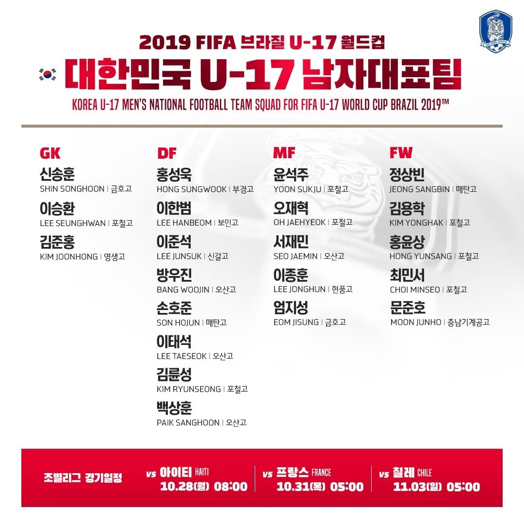 ▶ FW: 정상빈(매탄고), 최민서, 김용학, 홍윤상(이상 포철고), 문준호(충남기계공고)