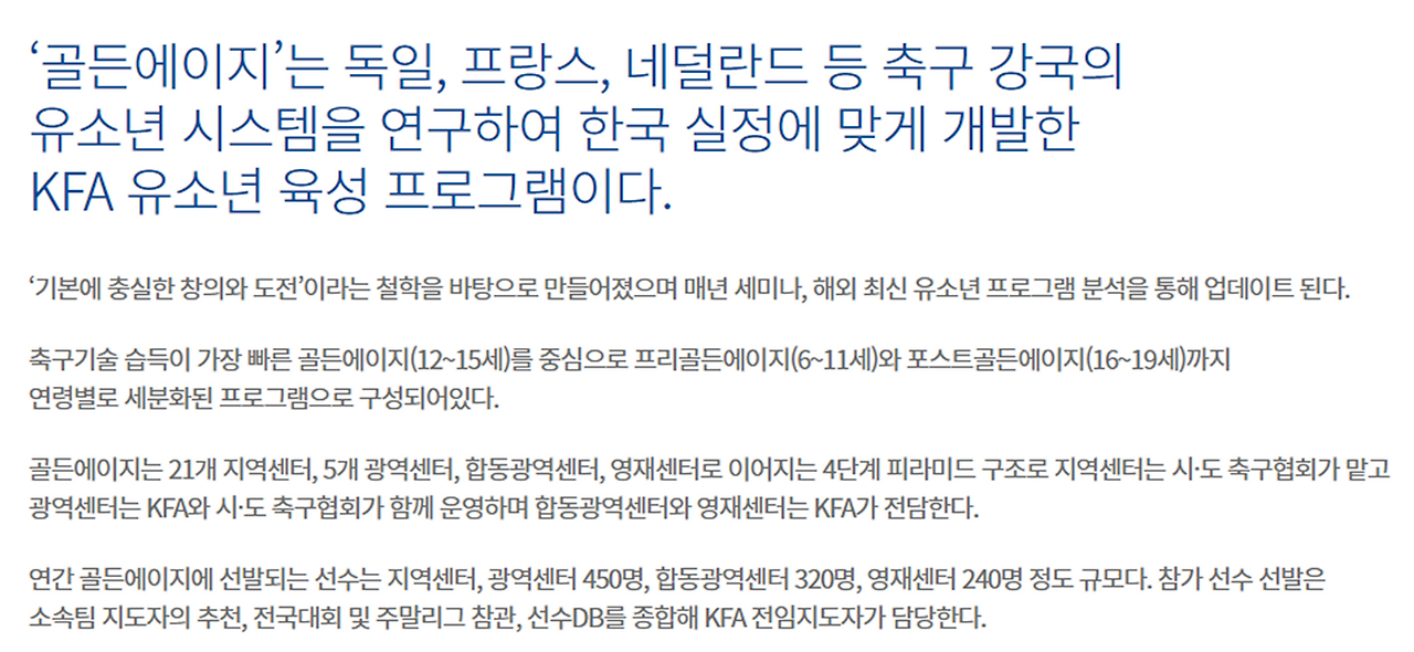 이번 U-17 대표팀은 과거 박주영, 이승우처럼 슈퍼스타는 없지만, 전체적인 팀 조직력과 스쿼드는 충분히 역대급이라 불릴 만 하다. 2002년 월드컵 키즈들이 주축이 된 U-17 대표팀은 '골든에이지'를 처음부터 경험한 1세대다. ('골든에이지는' 2014년 '기본에 충실한 창의와 도전'을 철학으로 세분화된 프로그램을 접목한 유소년 육성 프로그램이다.) 탄탄한 기본기, 전술적 이해도가 높은 이들은 U-20 월드컵 준우승에 뒤이은 신화를 준비하고 있다. 최종 명단을 살펴보면 K리그 산하 유스팀 소속이 대거 포진했다. 포철고(7명), 오산고(4명), 매탄고, 금호고(2명)가 대표 선수를 배출했다. 많은 선수들이 다양한 포지션을 소화할 수 있는 멀티플레이어 능력이 뛰어나 18명뿐인 필드 플레이어 스쿼드 역시 탄탄한 편이다.