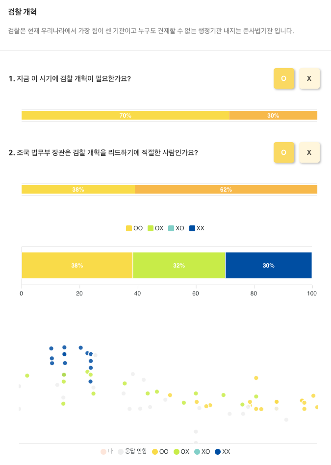 OXOpolitics는 정치적 신념에 상관없이 함께 와서 놀면서 자신의 신념을 밝히고 가볍게 주제에 대한 입장을 밝힐 수 있는 곳이 되었으면 좋겠습니다. 그리고 각 주제에 대한 옹호와 비난보다는 우리나라에 어떤 생각을 하는 사람들이 얼마나 많은지 정치의 큰 그림을 함께 그려가는 공간이 되었으면 좋겠습니다.