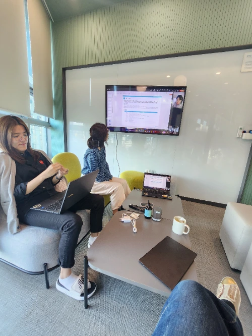 에코나인 회의 온오프 회의모습경영지원 시스템을 안정화시켰다. 프로젝트 운영팀도 어느 정도 안정화 되었는데 직급 체계와 파트 체계도 도입할 예정이다.