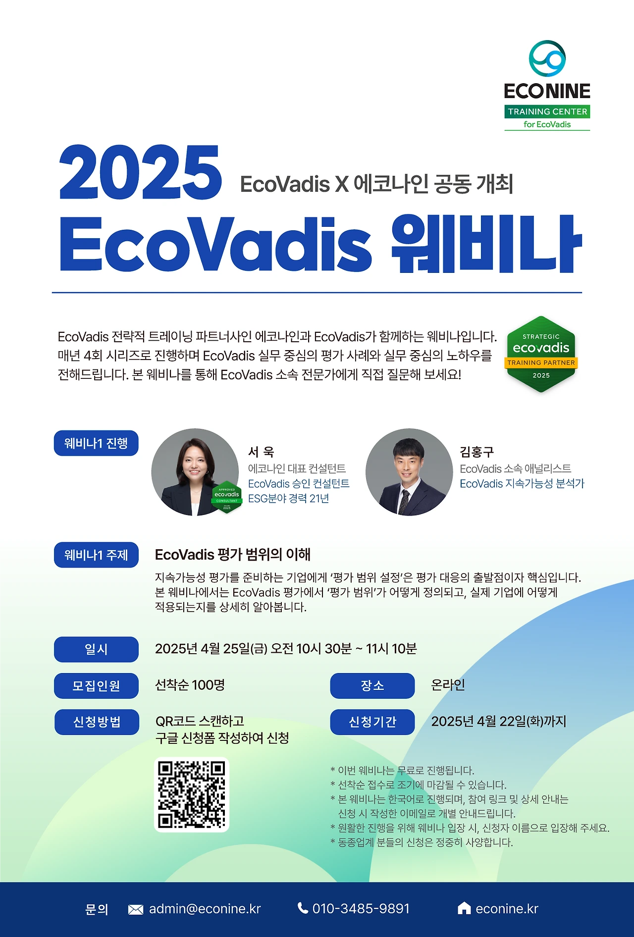 한 사람에 대해, 한 조직에 대해 깊숙이 알 수 있는 방법에는 일이 있습니다. 그런 의미에서 EcoVadis와의 파트너십은 이익 실현, 비즈니스 선점 이상으로 저와 에코나인에 특별한 의미가 되고 있습니다. 의미 있는 관계를 신의 있게 지켜나가고 싶습니다.