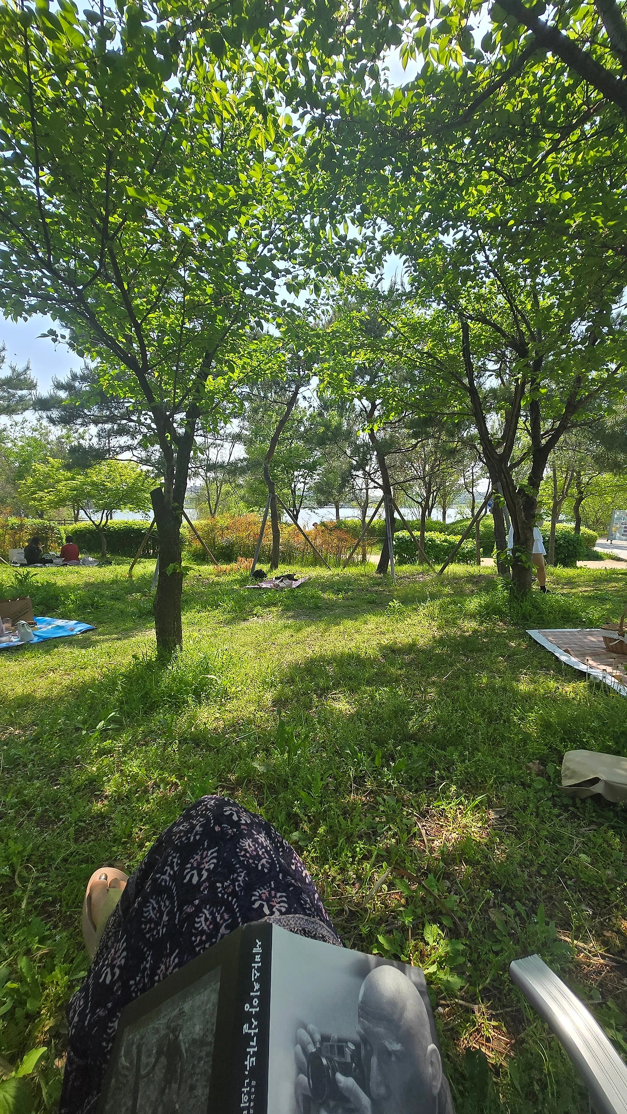 한강 망원 지구를 앞마당처럼 오간 지 5년이 다되어간다. 과연 이곳을 떠날 수 있을까. 모든 것을 품어주는 초록빛과 물결, 바람 소리 덕분에 지금의 내가 있다. 나를 키운 건 팔 할이 말없이 자랑 없이 늘 그 자리에 있어주는 이들이다. 마음이 가난해도 돈이 없어도 한치에 오차 없이 ㅡ 안아주는 자연 ㅡ 아름다운 봄날 앞에서 영혼이 드디어 돌아오는 경이를 매일 갱신할 수 있어서 감사한 날들이다. 유튜브와 가십과 타인에 대해 평가할 시간을 모아 자연과 함께 하는 시간으로 바꿀 수 있다면 ㅡ 아마 나는 지금 보다 한층 고양된 인간이 되어있을 것 같다. 최고로 좋은 습관은 자연을 만나지 않으면 찝찝하고 불편한 상태가 되는 일이라는 확신을 확신하는 4월. 오늘도 가장 편안한 옷, 모자, 캠핑의자, 책 몇 권을 들고 한강에서 최강 럭셔리함을 누린다. 영혼을 숨 쉬게 하는 편안함은 자연만이 줄 수 있다. 자연과 비슷한 마음의 사람이 되긴 쉽지 않다. 그저 닮으려 노력할 뿐.