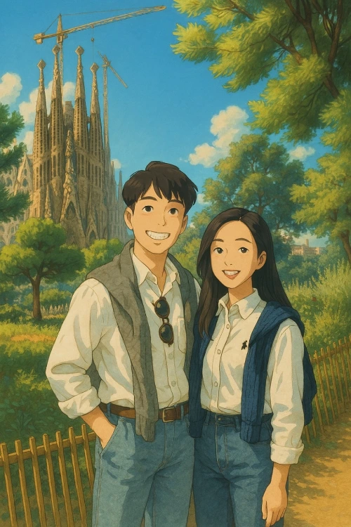 <지브리풍으로 만든 나와 아내의 모습, 막상 같이 두고 보니 다른 사람 같다.>