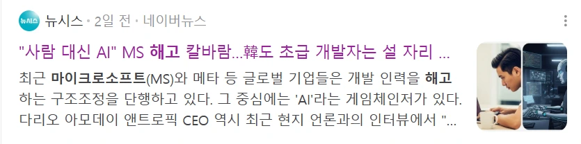 요즘 기사들을 보면, 특히 미국 빅테크 기업을 중심으로 주니어급 인력을 줄이는 움직임이 보인다.