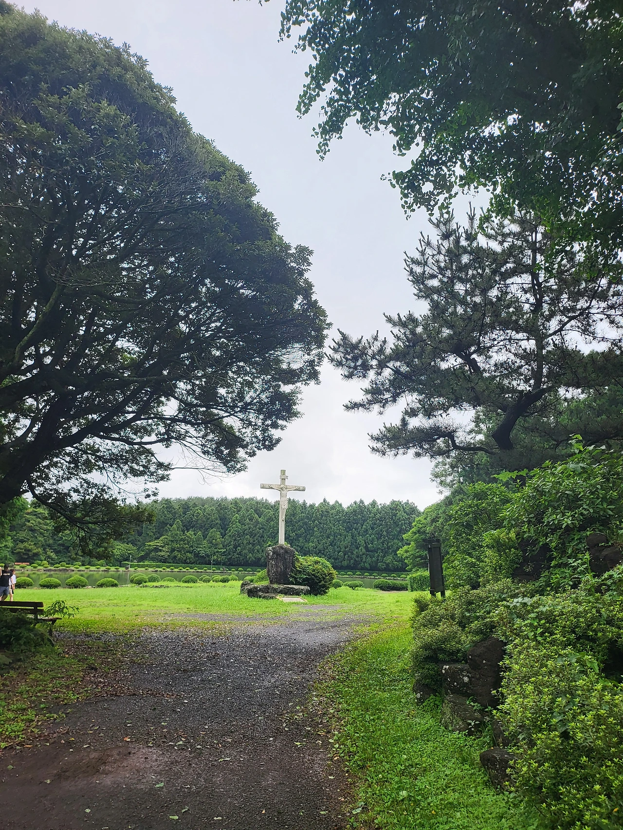 호수 반대편으로 보이는 십자가가 첫번째 사진의 그 십자가이다. 삼뫼소는 세개의 오름을 가진 연못이란 뜻이라 한다. 맥그린치 신부님이 90년대 이시돌 목장 조성과 함께 야외순례를 위해 정비하였다고 한다.