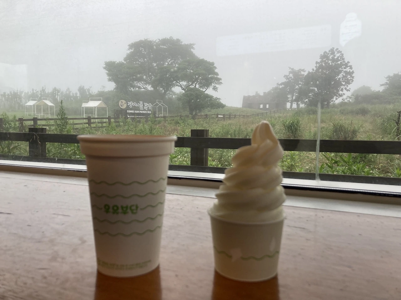 그리고 우리는 다시 차를 가지고 이시돌목장으로 향하였다. 그때 하늘이 다시 구름이 끼며 어둑어둑해지는 듯 하였다. 목장에 다다랐을 때는 비가 쏟아지기 시작하였다. 하지만 우리는 그곳의 멋진 조형물들을 둘러보고 (테쉬폰 사진도 날라가버렸다 ㅠ) 우유부단이라는 카페에서 아이스크림을 먹었다.