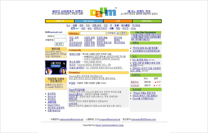 인터넷의 대중화와 함께 사람들이 몰려든 온라인 플랫폼은 정리가 잘 되고, 검색을 통해 다양한 장소로 떠날 수 있는 디지털 공항 같은 곳(디지털 허브)이 인기가 많았다. 허브 같은 장소인 이 플랫폼을 '포털 플랫폼'이라고 부른다. 포털(Portal)의 의미가 입구가 되는 사이트라는 뜻을 갖는다. 그중 대표적인 곳이 바로 '다음'이다. 최근에는 카카오와의 분사 등으로 고객들에게 외면받는 안타까운 이야기가 들려오지만 1990년대 후반부터 2000년 중반까지는 '다음'의 최고 호황기였다. 우선 다음 하면 빼놓을 수 없는 카페이다. 자동차, 게임, 학업 정보 공유 등의 다양한 주제를 사람들이 정보를 공유하고 의견을 나누는 인터넷 카페였는데, 카페들이 활성화가 되며 카페에 진입 시 가장 먼저 노출되는 화면인 '대문'이 광고를 하기 딱 좋은 장소였다. 눈에 띄는 다양하고 예쁜 이미지 배너들이 마치 쇼핑센터에 들어선 다양한 영업지점들의 간판을 세워놓은 듯하였다. 나 역시 마케팅을 진행할 때 우리 제품에 관심이 많은 잠재 고객층의 주요 카페 경로를 분석하여 해당 카페에 돈을 주고 광고를 진행하였다. 이것을 온라인 마케팅에서 배너광고, 'DA(Display Advertising) 광고'라고 한다. 다음은 결국 이메일 기반의 플랫폼이다 보니 이메일 광고도 같이 활성화가 되었다. 쉽게 이메일을 통해 브랜드를 홍보하고 프로모션 안내를 하는 광고였다. 2025년 현재까지도 인기를 누리고 있는 뉴스레터 광고도 이때부터 시작되었다.