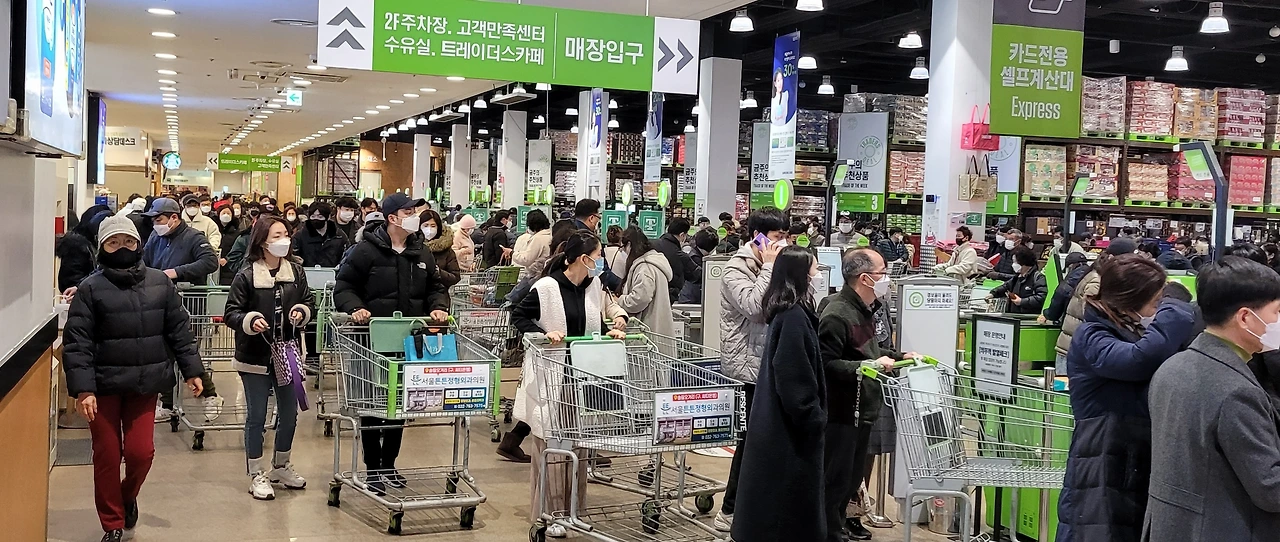 한 시간 안팎의 기다림이 있었고 우린 무사히 마트 매장 안으로 입성했다. 오픈 한 지 30분도 안 됐는데 사람과 카트로 정체가 심했다.
