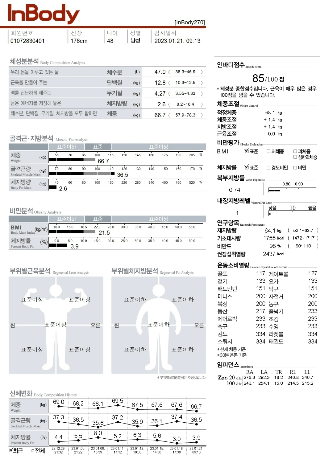 체중은 12킬로 감량 됐고, 체지방률 4%, 근육량과 기초대사량 유지, 혈압도 120/80mmhg 정상으로 돌아왔으며, 혈당 스파이크 및 크래쉬도 사라졌다. 눈도 맑아졌고, 피부 알러지도 사라졌다. 식후 무기력증도 감쪽같이 없어졌다. 중요한 것은 컨디션이 너무 좋다. 18시간 공복을 한 후에도 고강도 운동이 힘들지 않다.