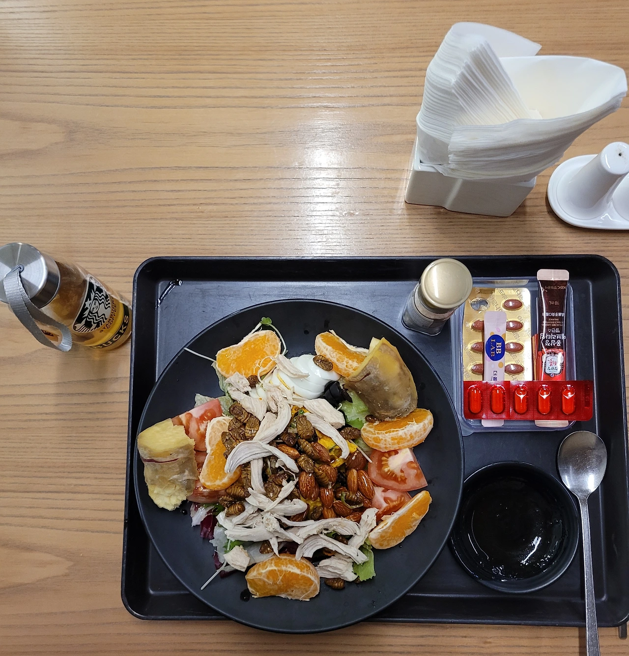 요즘 나는 주방을 자주 들어간다. 예전엔 요리하는 것이 제일 귀찮고 싫었다. 그런데 도시락을 챙기는 버릇이 생겼다. 밖에서 사 먹는 음식의 양과 질이 너무 별로라는 판단에서다. 도시락 내용물은 별거 없다. 계란후라이와 야채, 아몬드, 닭가슴살 그리고 발사믹 식초와 올리브유를 챙기는 것이다. 저녁에 닭가슴살을 삶고 야채를 다듬고 구워서 도시락에 넣는 일이 전부다. 그리고 비타민C를 비롯한 영양제를 챙겨 놓는다.