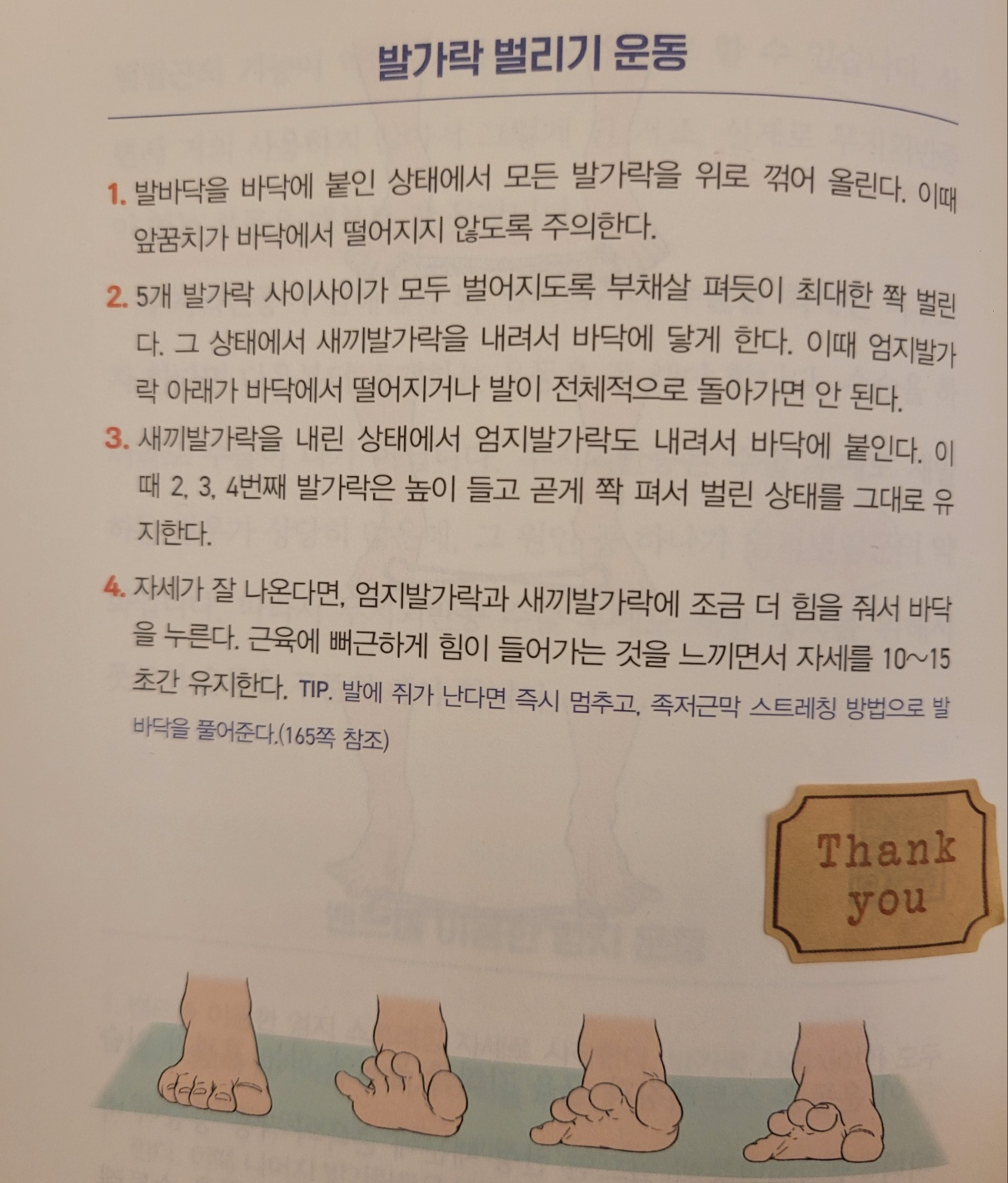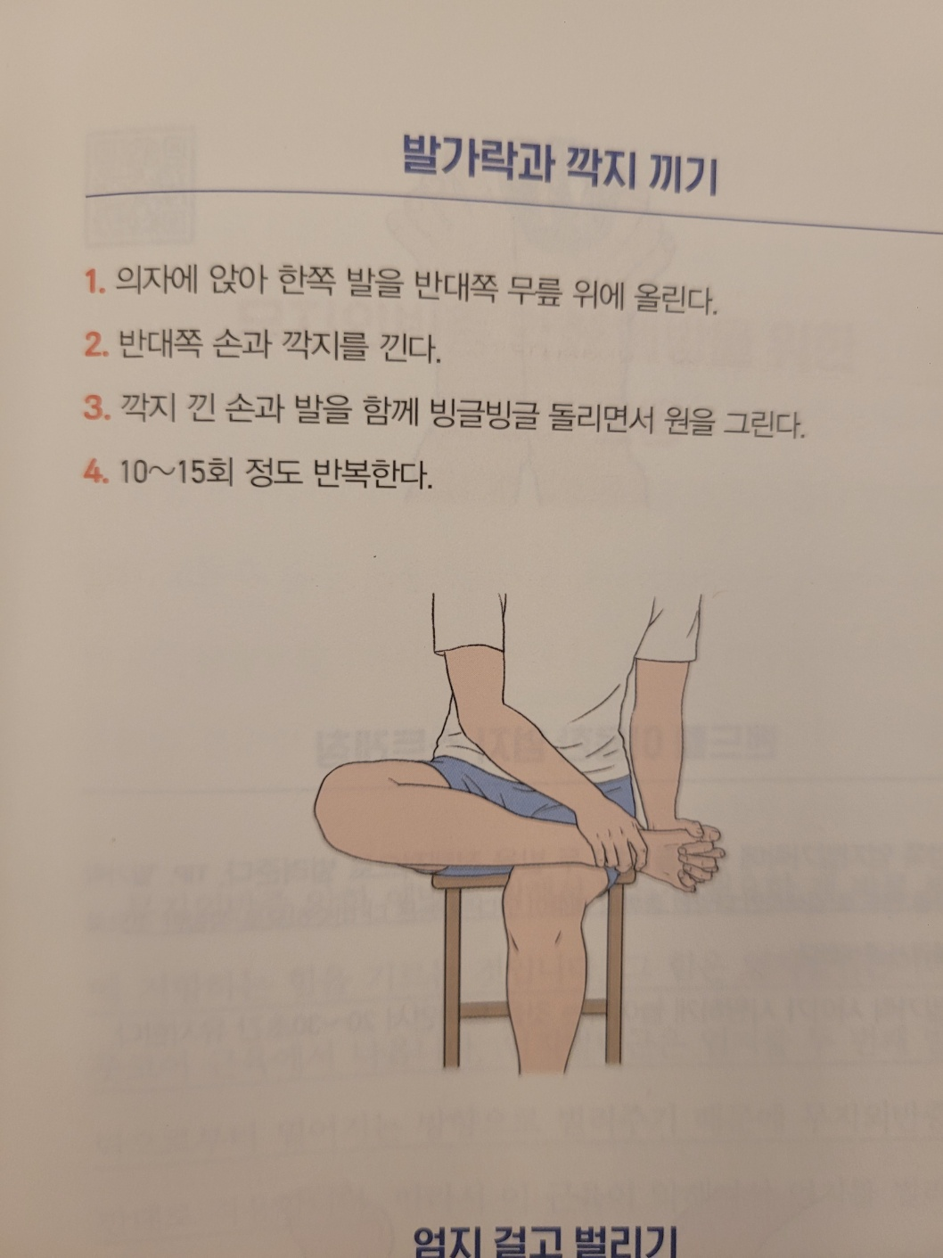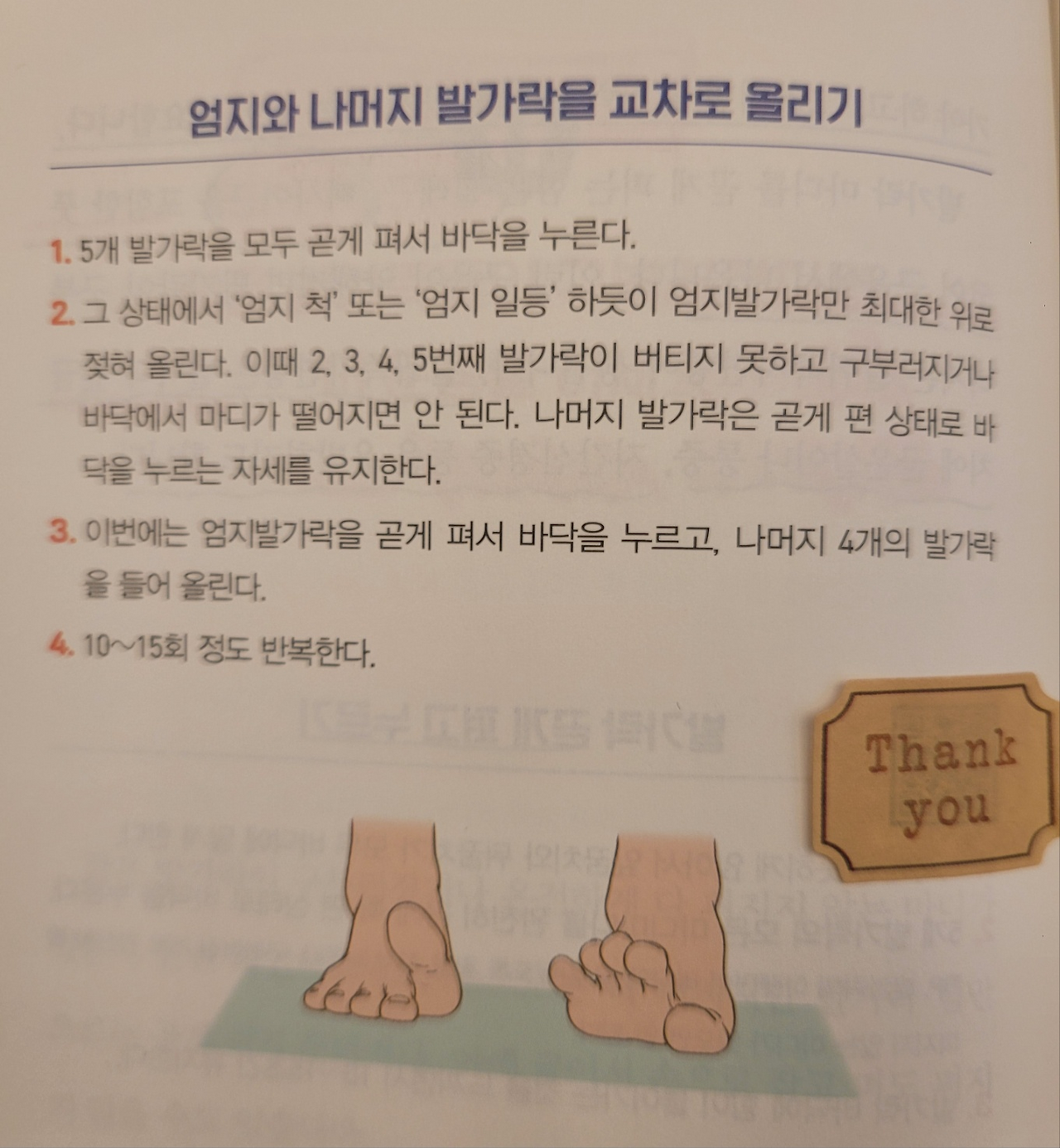둘째는 엄지와 나머지 발가락을 교차로 올리기다.