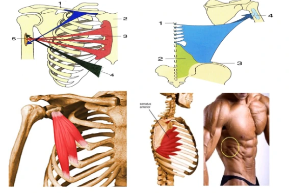 위에부터 대흉근, 광배근, 소흉근 전거근이다.