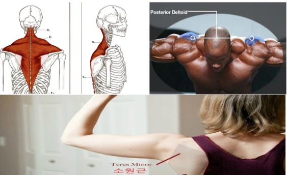 순서대로 중승모근, 후삼각근, 소원근이다. 더 있지만 대표적인 근육들이 이 세 무리다.