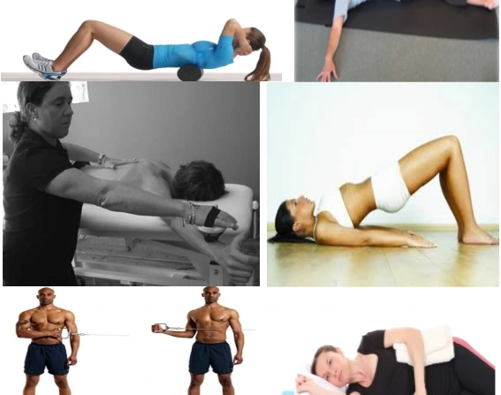 그런데 이와 같은 어깨의 잘못된 움직임 패턴을 바로 잡는 고무적인 방법이 있다. 다 아시다시피 운동이다. 운동은 크게 흉추의 움직임을 회복할 수 있는 운동을 실시하고 어깨를 팔방으로 움직이게 하는 근육들을 강화하고 마지막으로 속 근육인 회전근개를 위한 운동을 하는 것이 바람직하다.