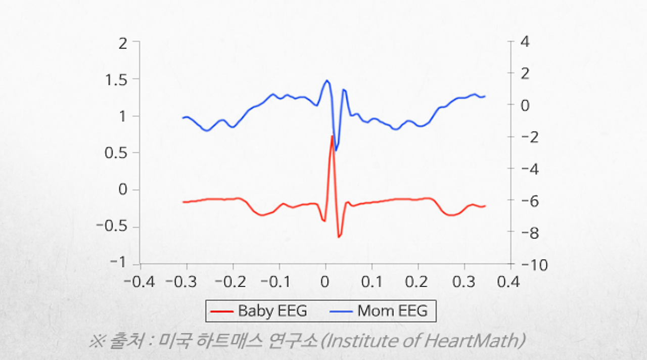 정말 재미있는 사실은 심장을 통해 순환하는 혈액에는 철 성분이 있어서 사람마다 고유의 전자기장이 발생한다는 것이다. 만약 엄마가 마음을 편안하게 가지고 심장이 고르게 뛰면 따뜻하고 평온한 에너지장이 형성되어 아이에게 영향을 미친다. 반대로 엄마가 스트레스를 받고 화를 내거나 하는 등 심장이 불규칙하게 뛴다면 아이한테도 불안과 불편함이 그대로 전달된다.