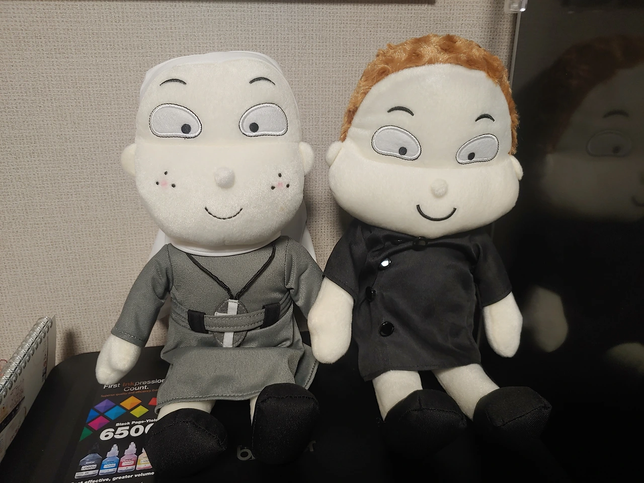 자주 볼 수 있도록 인형을 책상 위에 올려 두었습니다. 신부님과 수녀님의 인형은 저에게 좋은 힘이 되어 줄 것 같습니다. 누군가 나를 보고 있다는 것은 나를 좀 더 바르게 만들어주니까요. 이렇게 특별한 인형을 선물해주신 생활 성서 선생님께 감사드립니다.