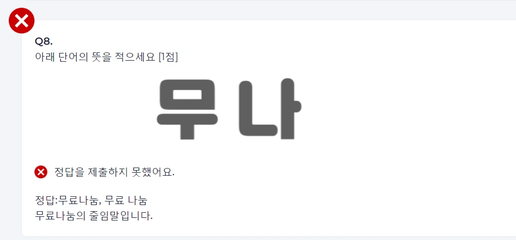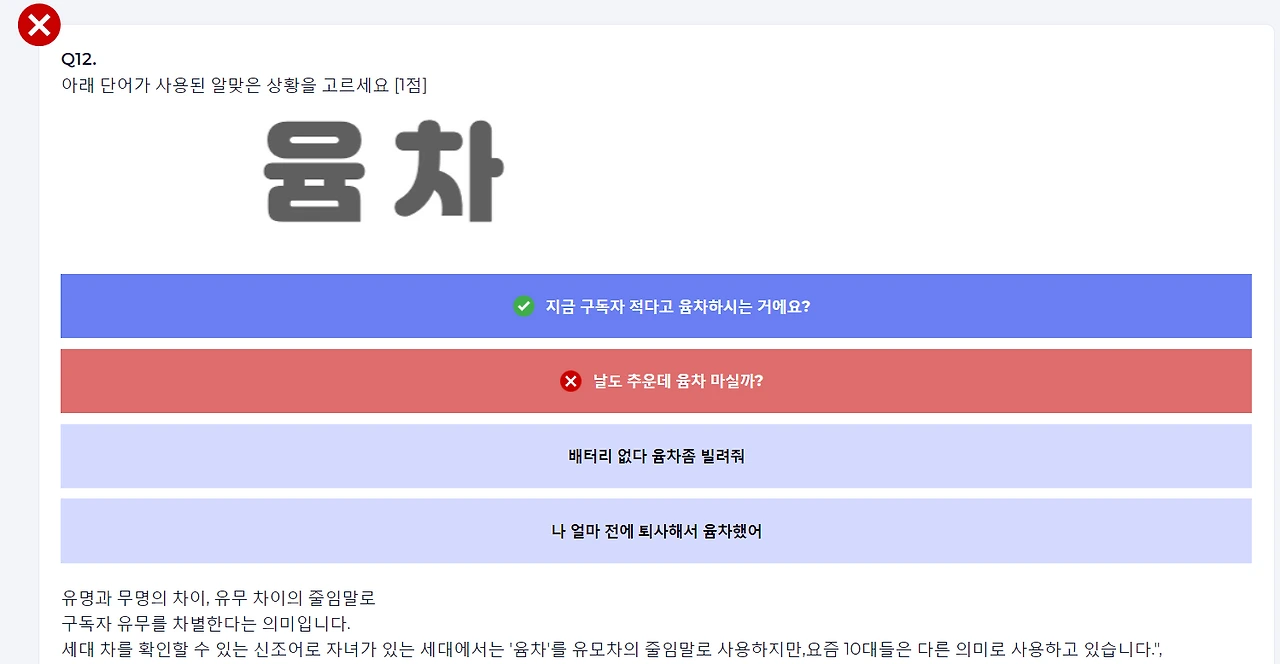 주관식 4개 다 틀렸고, 객관식도 2개가 틀렸다. 윰차가 유모차가 아니라니....!!