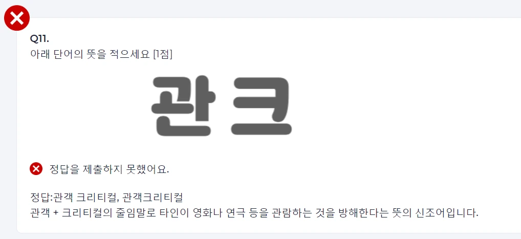 오늘 신조어 능력 고사 성적을 받으니 내 위치가 보인다. 더 공부해야 하는 사람이다.