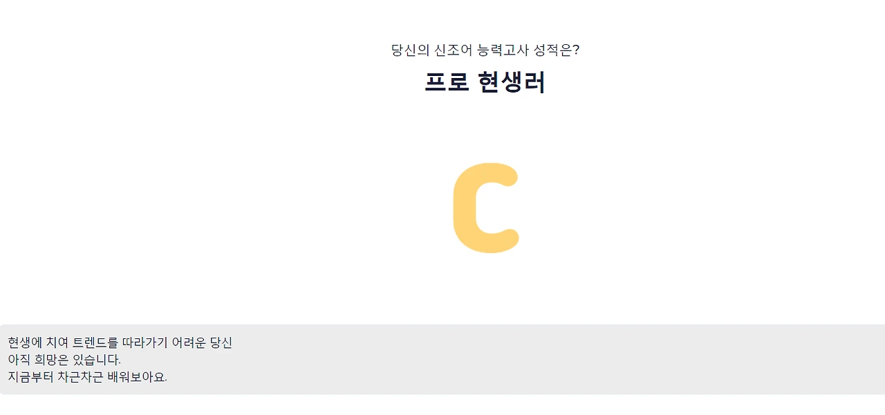 시험 결과는 총 12문제 중에 6문제를 맞혀 C등급 프로현생러란다. 하위권인가...