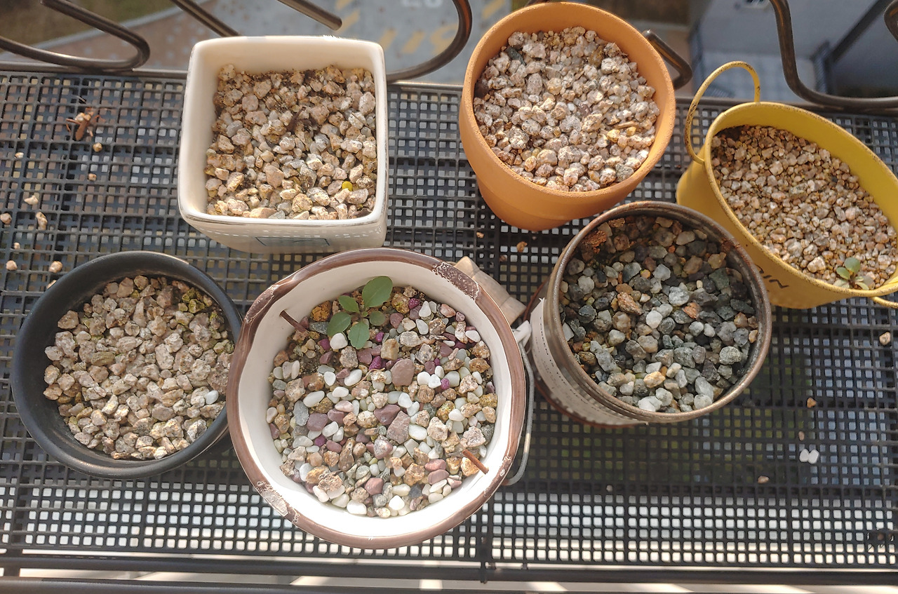 어느 날은 바라보고 있자니 꼬챙이 같은 새싹이 빨리 잎을 좀 쫙~! 펴주면 좋겠는데 너무 더디 떨어지는 것이 답답하단 생각이 들어서 아주 조심조심 붙어있던 잎사귀를 떼어주었다. 꼬챙이 같은 잎들을 하나하나 떼면서 날개를 펴준 기분이 들어서 기분이 좋아졌다. 그리고 이 테이블 야자들이 빨리 더 잘 자랄 것을 기대하고 마치 내가 뭔가 큰 도움을 준 것처럼 뿌듯해졌다.