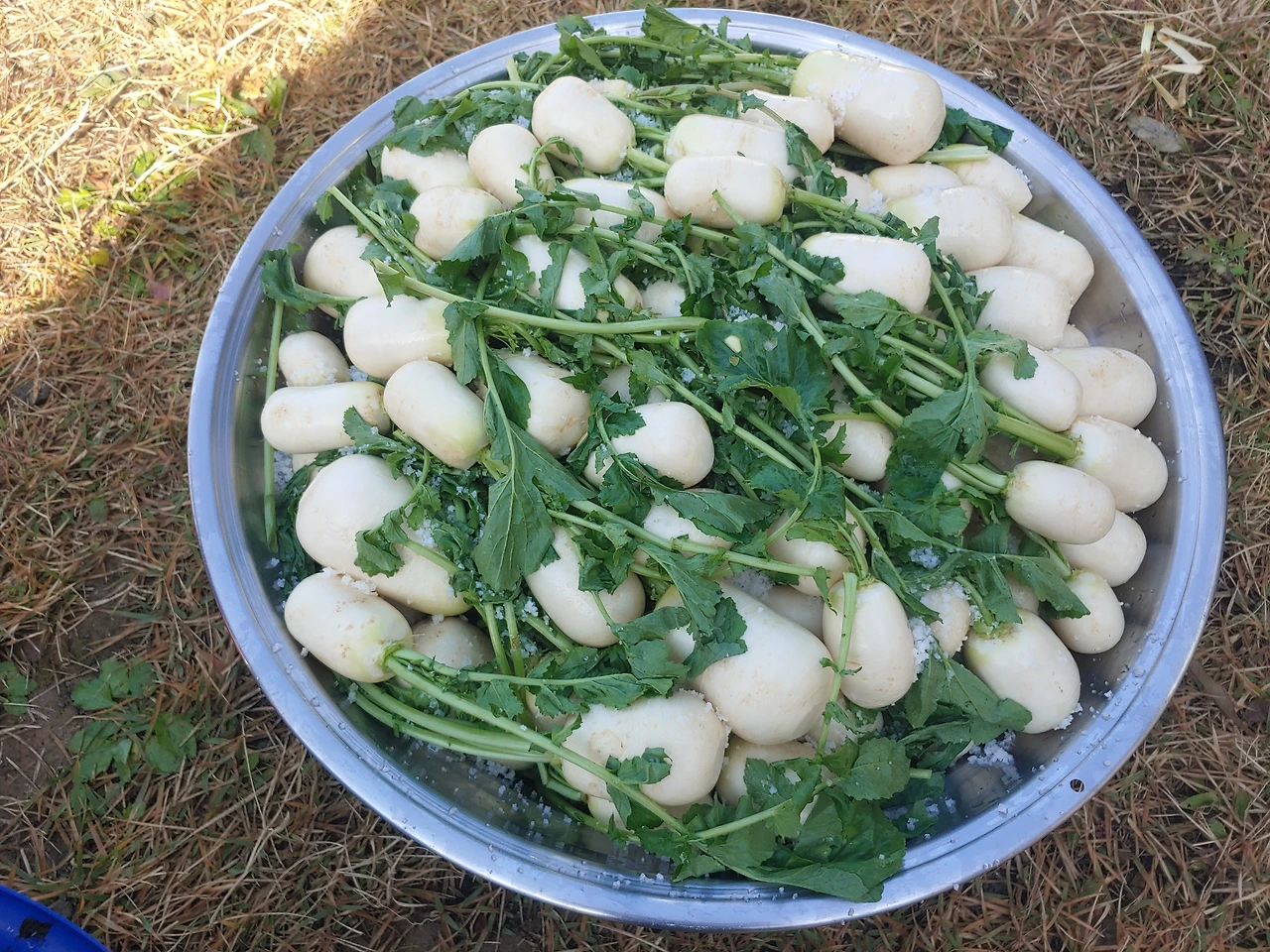 옆동네 사시는 시이모님이 농사지으신 무, 배추, 갓, 파 등 김치 재료들을 가져왔다.배추를 가르고 씻고, 무와 파 등을 다듬고 씻는다. 어른들이 밖에서 분주하게 움직이고 있을 때 초등 4~중2까지 우리 아이들 둘과 조카 둘은 방에서 각자 아이패드나 핸드폰을 하고 논다. 뭔가 그래도 알려줘야겠다는 생각에 아이들을 부르지만 초등 4학년 아들만 나와 조금 거들며 힘이 들고 재밌다고 한다.
