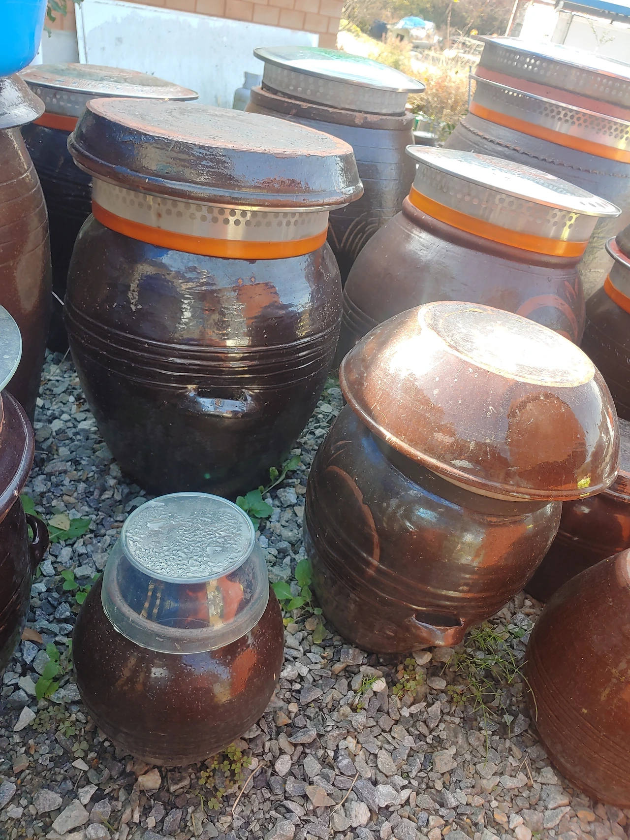친한 지인이 예전에 된장이나 간장 같은 것을 만드는 것을 배워놔야 전통이 사라지지 않는다는 말씀을 하셨을 때, 흘려들었고 난 관심이 없었다. 그저 '관심 있고 좋아하는 사람이 배우면 되지~ 난 나중에 다 사 먹을 거야.' 속으로 생각했다. 어머니 마당의 항아리들이 새삼 다시 보였다. 이 항아리들 안에는 어머니가 날이 좋은 날 만드신 고추장, 된장, 간장들이 얌전히 들어있다. 그리고 오늘 김장준비를 하며 어머니가 건강하게 움직이실 때까지 아마 김장을 함께 하겠지만 어머니가 안 계신 이후에 나는 김장을 홀로 할까? 하는 생각을 한다. 예전만큼 김치를 많이 먹는 시대도 아니고, 먹을 것이 넘쳐나는 시대, 굳이 몇십 포기씩 꼭 일 년 김치를 해야 하는가? 김장을 하기 전에 여러 생각이 들곤 했다.
