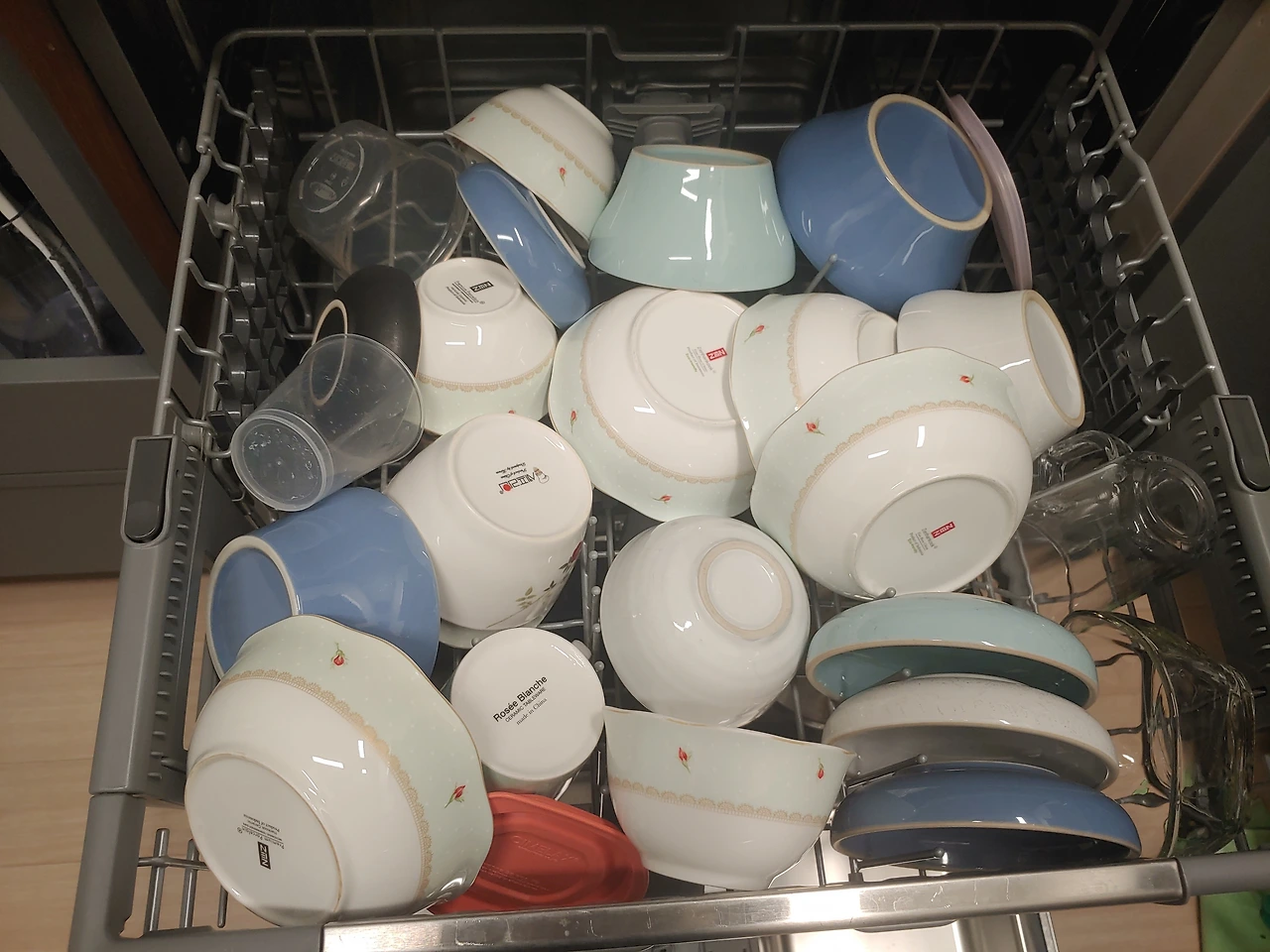 하루치 설거지를 모아 빼곡하게 안에 골고루 잘 채운다. 약간 큰 음식찌거기들은 살짝 헹궈내고 물이 골고루 분사되도록 그릇을 채우는데 10분이 걸리지 않는다. 이제 문을 닫고 작은 블록의 세제를 넣고, 버튼을 누르면 2시간 후 멜로디가 알려준다. 안에 넣기만 하면 되는데 한 시간이 걸리든, 두 시간이 걸리든 뭔 상관이랴. 성격 급한 엄마는 몇 분이면 후딱 될 것을 식기세척기 같은 것을 샀다고 한마디 하셨으나, 난 이 좋은 걸 이제야 만났다는 게 안타까운 마음마저 들었다.