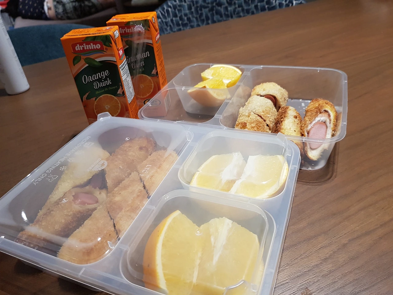 한달살이의 혜택으로 아이들의 첫 등교에 맞춰 집 앞으로 도시락이 배달되었다.