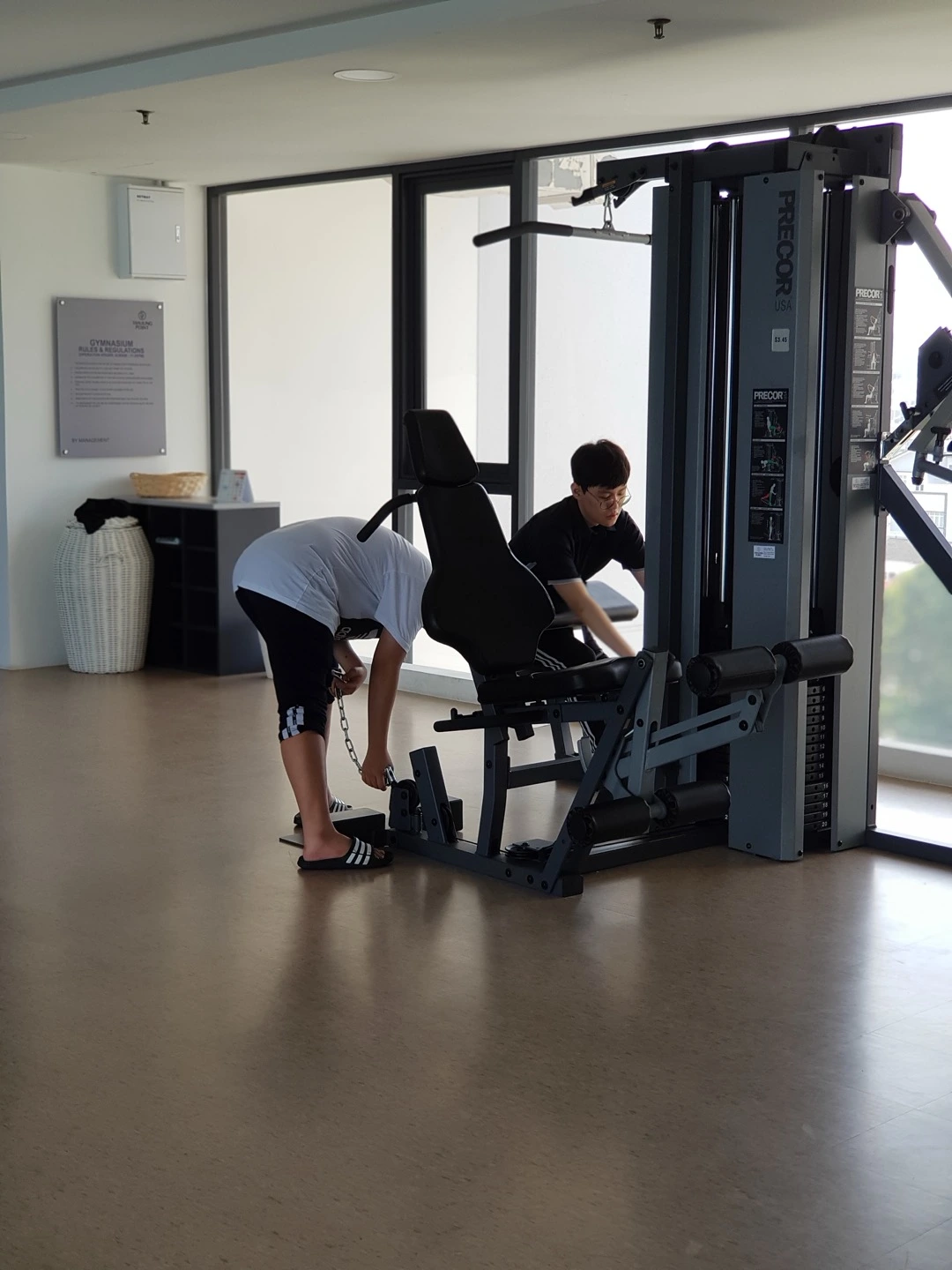 숙소에 기본적으로 헬스장이 있어 우리만의 트레이너 실이 돼버렸다.