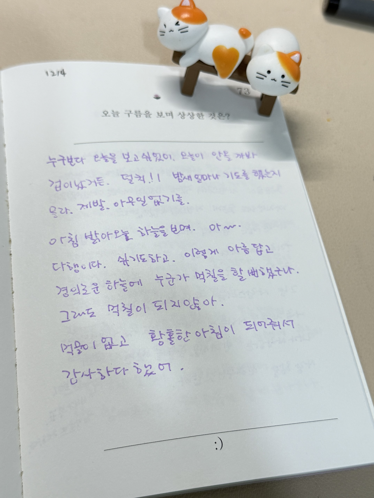 매일의 나는 안 괜찮아.. 아니 괜찮아를 여러 번 반복하는 날들 중에 이제는 고요하게 괜찮아를 나에게 말해주게 되었다.