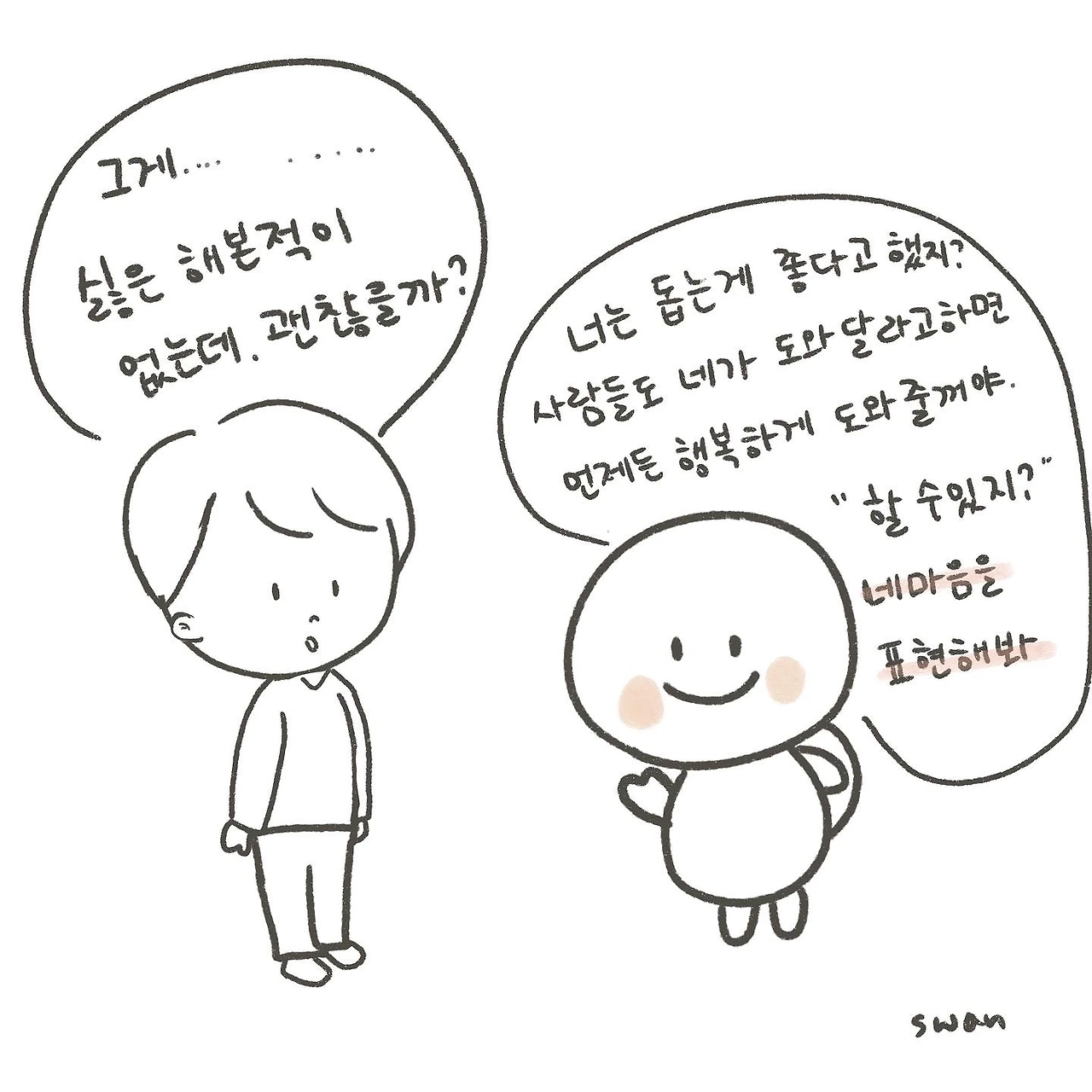 속마음을 잘 표현하지 않는 2호를 안쓰럽지만 혼자 곪지 않도록 표현하는 방법을 차근차근 하나씩 알려주려 한다.
