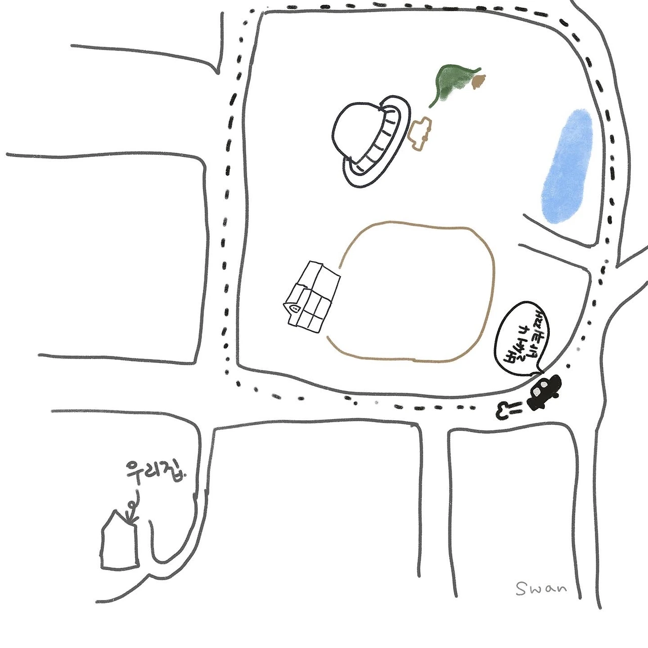 한번은 몸이 아파 차에 태워 한시간 가량을 집주위를 빙빙돌며
