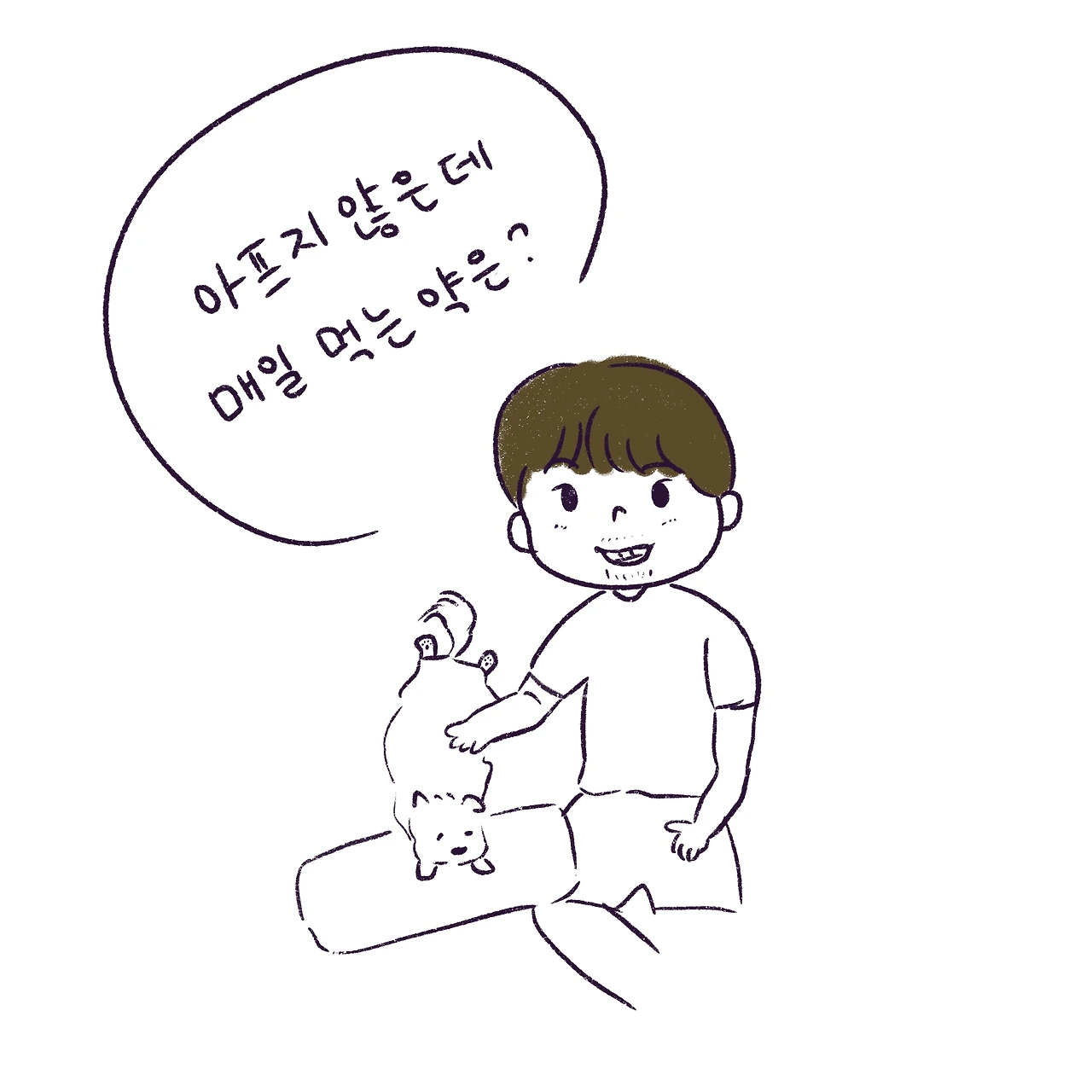 아이는 못들은척 양치를 안하고 다니다가도 본인이 한말이 생각나 머쓱해 한다.