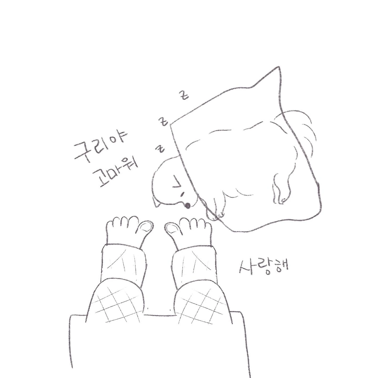 아니… 언제나 바라보는 엄마에게 구리는 자신이 보호자야 라는 의무감과 사랑으로 언제나 이렇게 책상에 앉을때면 발끝에서 잠을 잔다.