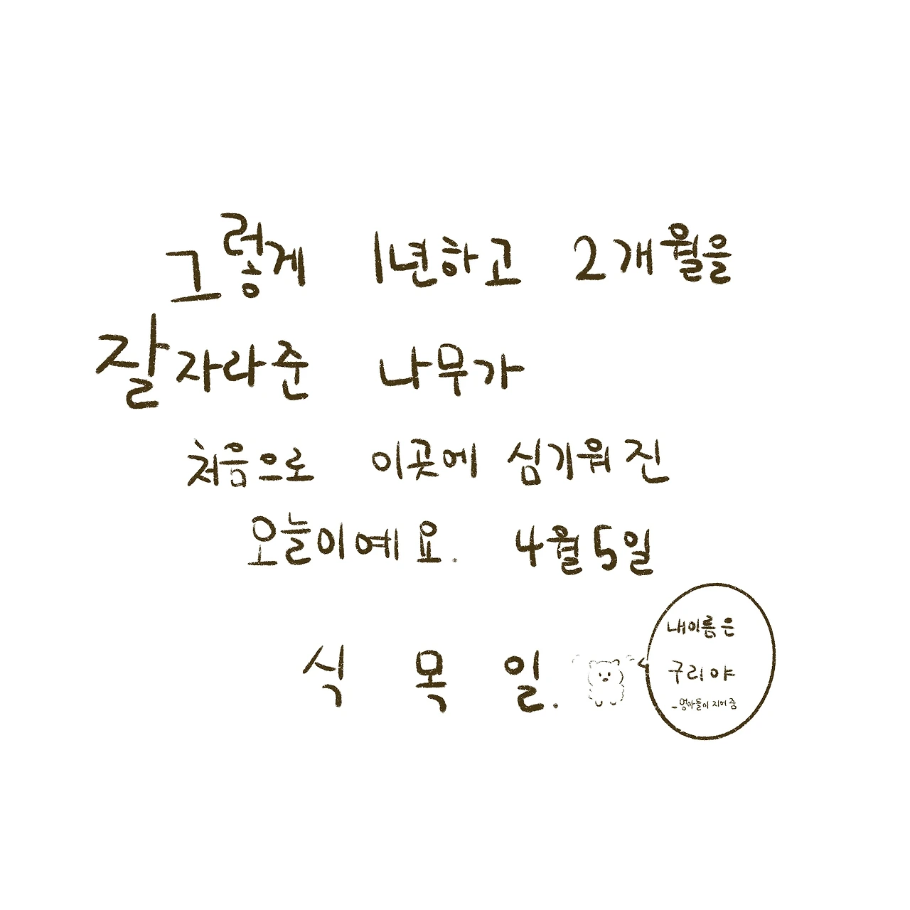 매년 식목일이 너의 두번째생일.. 아닌 우리가족이 된 첫번째 생일로 기억할께 ^^ 사랑해