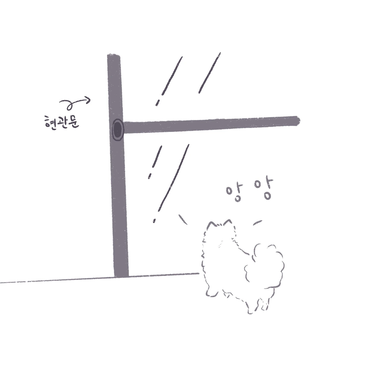 구리가 갑자기 현관문을 보고 이렇게 말하는 것 같다.