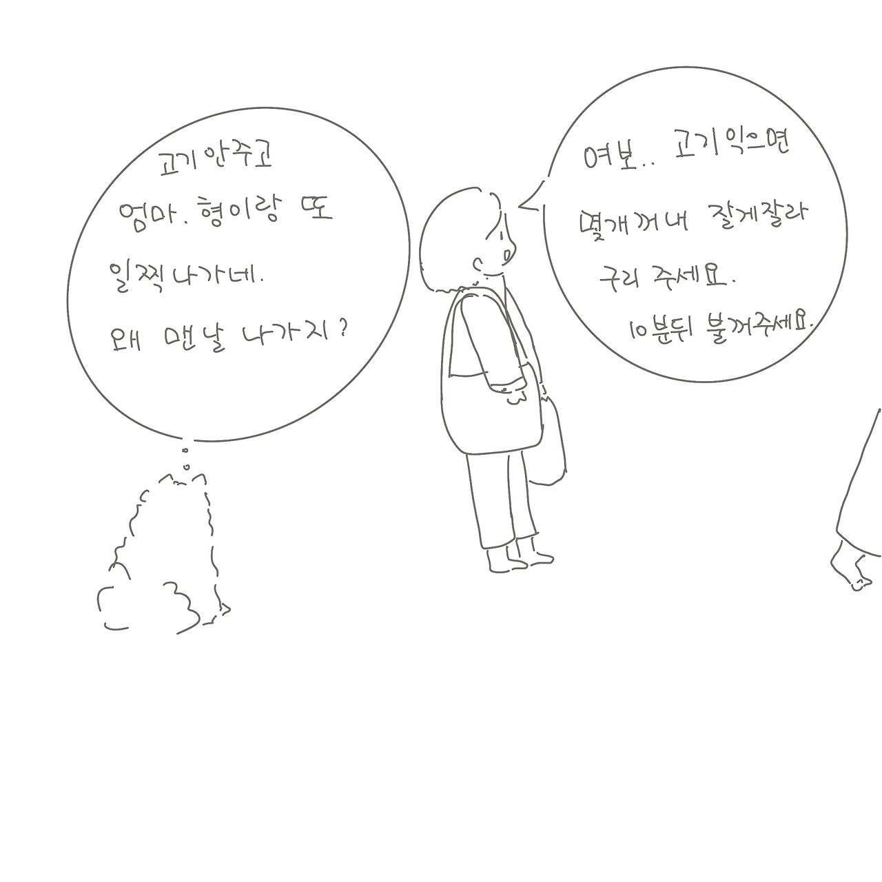 “여보 가스렌지위에 고기 삶고 있는거 10분뒤에 끄고 구리(반려견) 몇개 꺼내서 잘게 잘라주세요“