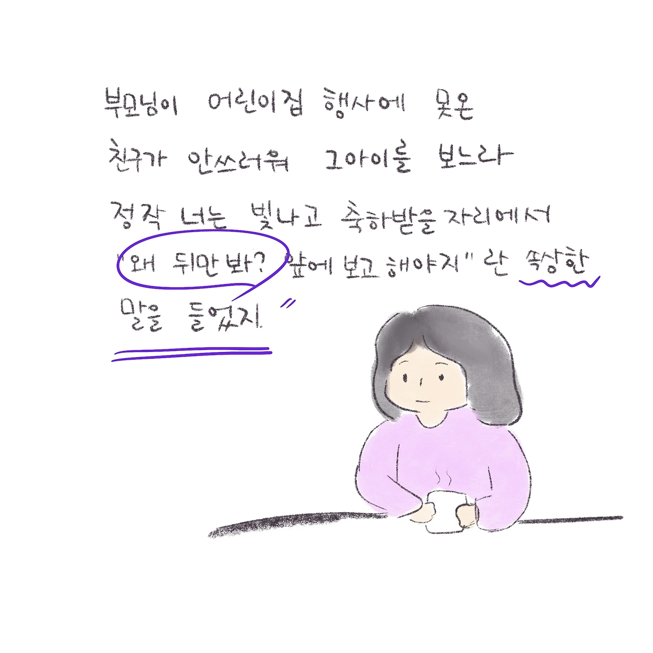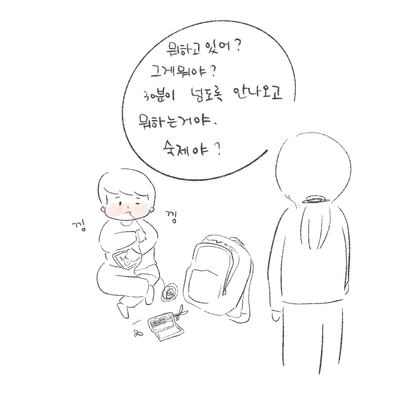 낮에는 아이들의 행동에 화가 나서 맘에도 없는 말을 쏟아내다 아이가 울다 잠을 들면 그 모습을 보고 한없이 울며