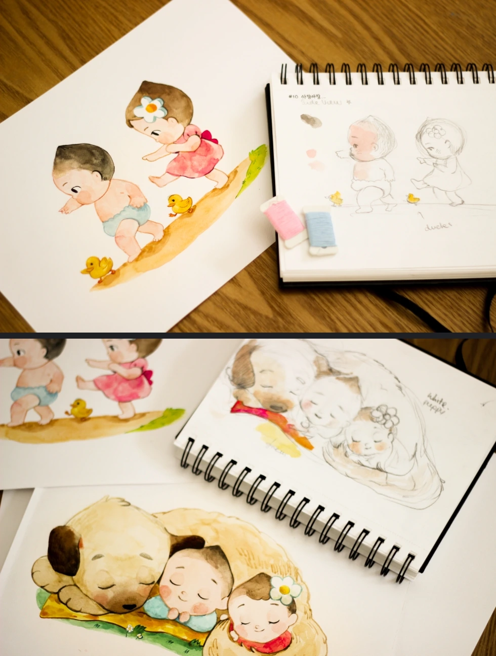 갓난 아가인 둥이들을 위한 책이니 그림이 중요할 수밖에 없었다. 그러나 아쉽게도 난 그림에는 자신이 없었다. 그래서 그림을 그려줄 수 있는 일러스트레이터를 물색하기 시작했다.