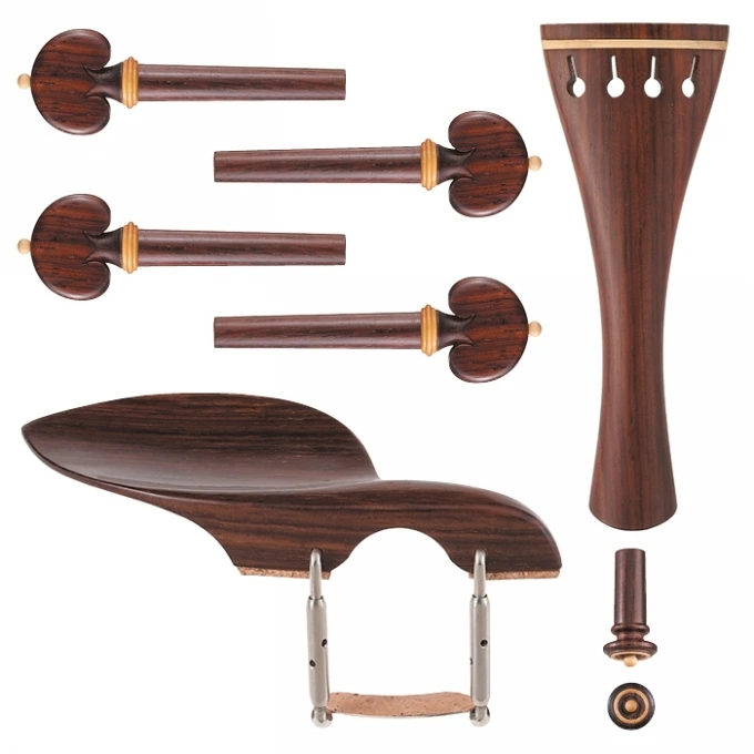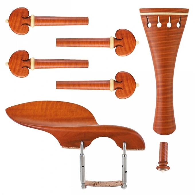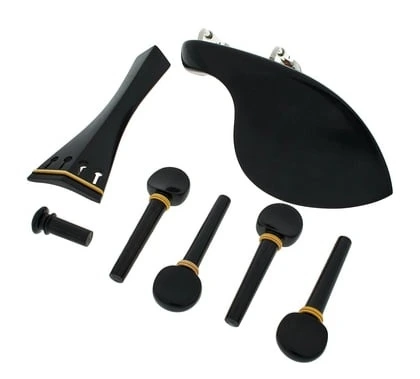 현악기 피팅세트에 대해 알아보자. 현악기 피팅세트는 현의 장력을 고정시키는 펙(pegs)과 테일피스(tailpiece), 그리고 턱을 기대는 턱받침(chinrest)으로 구성돼 있다.