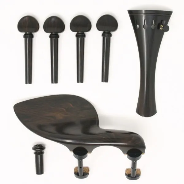 피팅세트로서 에보니는 가장 많이 쓰이는 목재다. 흔히 바이올린을 생각하면 검은색의 펙과 테일피스, 턱받침을 떠올리는데 바로 그게 에보니다. 단단하기 때문에 내구성 측면에서 훌륭하고, 오염에도 강하다. 또한 특유의 무늬 때문에 미관적으로도 훌륭해 피팅세트로 사랑받는 목재다.